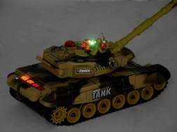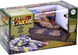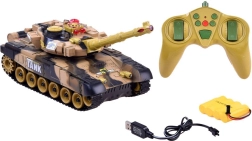 Ez a távirányítós tank magával ragadó csatajátékot kínál: pontos találat után hallható a célpont eltalálásának hangja, és az ellenfél tankjának hátulján kialszik a jelzőfény. Három találatot követően az ellenfél kb. 30 másodpercre kiiktatásra kerül. A forgó torony 360°-os tüzelést tesz lehetővé, a színes LED világítás pedig sötétben is látványos.