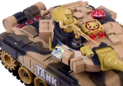 Realista RC tank sivatagi álcázással, 2,4 GHz frekvenciával, forgó toronnyal és effektusokkal az akciódús szórakozásért. Élvezd a fény- és hanghatásokat, a visszarúgást lövéskor, valamint a lánctalpas futóművet puha gumi láncokkal a kiváló tapadásért.