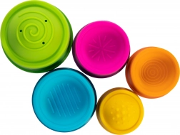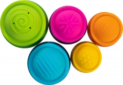 Fedezze fel a játékos, érzékszervi élményt a Dimpl Stack rakásolható kalapok készletével a FAT BRAIN-től. A csomag 5 puha kalapot tartalmaz, amelyeket könnyű megfogni, egymásra rakni és összenyomni – ideális a finommotorika, a kéz–szem koordináció és az érzékszervi észlelés fejlesztéséhez.