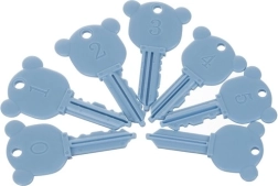 Egyedi, maci alakú kulcsok számozva, amelyek mindig csak az adott járműhöz illenek – fejleszti a logikát és a koordinációt.