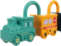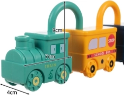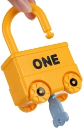 Ez az okos oktatójáték ötvözi a szórakozást az értelmes tanulással. Minden jármű egy zár, és mindegyikhez egy maci alakú, 0–5 számmal dombornyomott kulcs tartozik. A gyermek így természetes módon gyakorolja a finommotorikát, a logikus gondolkodást és a számfelismerést. A felső rész 360°-ban forgatható, helyes nyitás után a járművek könnyen összekapcsolhatók hosszú vonattá.