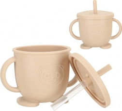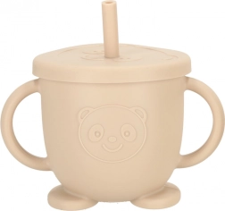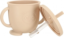 A szilikon bögre szívószállal és két füllel támogatja az önálló ivást és csökkenti a kiömlés kockázatát.