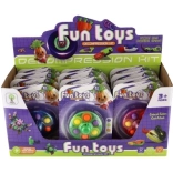 Ez a pörgettyű 8 cm átmérőjű, és három élénk színben érhető el, melyek azonnal magukra vonják a figyelmet.