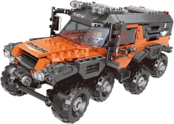 Ez a nagyszerű építőkészlet egy terepjáró összeszerelésére szolgál. A blokkok lehetővé teszik egy 8 kerekű, speciális feladatokra alkalmas jármű megépítését. Szuper, hogy az összeszerelés után a járműnek mozgó alkatrészei vannak. A narancssárga és fekete színű technikai elemek nagyon látványosak.