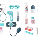 A sztetoszkópon kívül a készlet tartalmaz továbbá injekciós fecskendőt, szikéket, betegkártyát és számos egyéb eszközt és kiegészítőt. A készlet minden elemét gondosan tervezték, hogy a legnagyobb biztonságot és kényelmet nyújtsa a kis felhasználóknak.