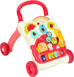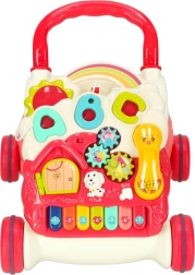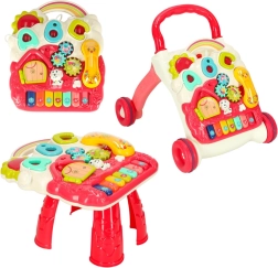 Univerzális 4 az 1-ben segítőtárs a legkisebbeknek: egyesíti a tolható járássegítőt, az oktatóasztalt, a manipulációs panelt és az ágyba tehető játékot. A színes elemek, a kis zongora, a fogaskerekek és más interaktív funkciók támogatják a finommotorikát, a koordinációt és az első lépéseket. A stabil felépítés, a kényelmes magasság és a szerszám nélküli, könnyű átalakítás teszi ezt a szettet ideális választássá a játékos mindennapi tanuláshoz.