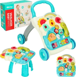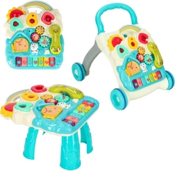 Egy eszköz helyettesíti a járássegítőt, a tevékenységpanelt, az oktatóasztalt és a kiságyjátékot. Kényelmesen, pillanatok alatt átalakítható.