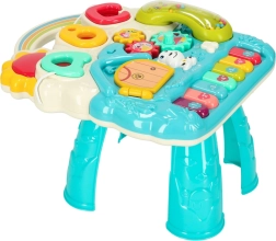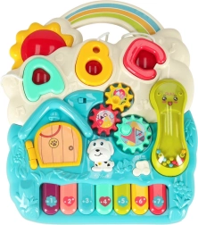 Héthangos zongora, fogaskerekek, betűk és nyitható ajtócska ösztönzik a felfedezést, a színek, számok és betűk tanulását.