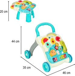 Az átgondolt asztalmagasságnak és fogantyúnak köszönhetően a játék és a járás biztonságos és kényelmes. A csúszásgátló kerekek és a stabil alap segítik az egyensúly megtartását a járástanulás során.