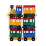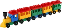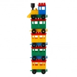 Az építőkészlet világos színű mozdonyt és öt vagont tartalmaz. Ezek a színek felkeltik a figyelmet és ösztönzik a gyermeki kreativitást.