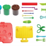 Szórakoztató kreatív szett kis szakácsoknak és kis művészeknek. A készlet része egy grill formákkal, formázó eszközök és négy tégely gyurma. A gyerekek élvezhetik az ételek formázását, a színek keverését és a fantáziadús grillszerepjátékot.