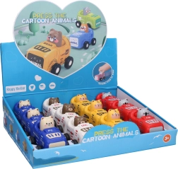 Aranyos kisállat autóban 9 cm-es méretben, amely örömet okoz minden kisgyereknek. Az autó felhúzhatós, és a kisállat lenyomása után elindul. 4 színváltozat érhető el – piros, kék, fehér és sárga. Ideális apró ajándéknak vagy utazáshoz szórakozásként.