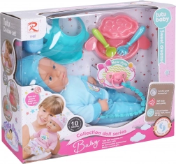 Fedezd fel a finom tapintású, kellemes, 30 cm méretű babát, amely puha testének köszönhetően ölelgetésre és mindennapos játékra csábít. A pocak megnyomására a baba hangeffekteket ad ki, amelyek életre keltik a gyermeki fantáziát és szórakozást.