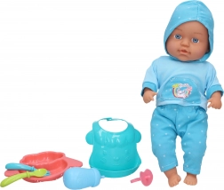 A bájos, puha testű baba örömet szerez minden gyermeknek. A pocak megnyomására hangeffekteket ad ki, a csomagban pedig gazdag kiegészítő készletet találsz a babagondozós játékhoz. A 3× AG13 elemek a csomag részét képezik, így azonnal kezdődhet a játék.