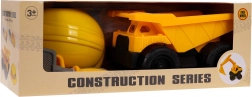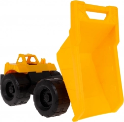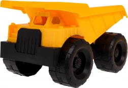 Az építő teherjármű nagy, forgó kerekekkel és billenthető platóval rendelkezik az igazán interaktív játékért.