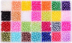 Készítsd el saját egyedi ékszereidet gyöngykészletünkkel, amely tökéletesen alkalmas nyakláncok, fülbevalók vagy gyűrűk készítésére. A gyöngyök sima felülete visszaveri a fényt és finoman csillog. Elérhetők széles színválasztékban, a klasszikus fehértől a pasztellszínárnyalatokig rózsaszín, kék, zöld, valamint intenzív színek, mint a lila, piros vagy zöld.