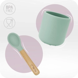Az evőeszközök fa nyéllel és szilikon véggel kis kezekhez lettek tervezve, így könnyű és biztonságos a használatuk.