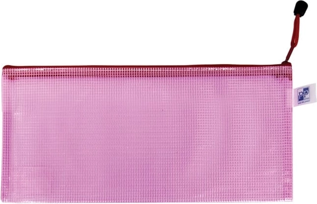 Praktikus rózsaszín cipzáras boríték ideális a dokumentumok, pénz és iratok biztonságos tárolására. Műanyagból készült és hálós szövettel megerősítve az extra tartósság érdekében.