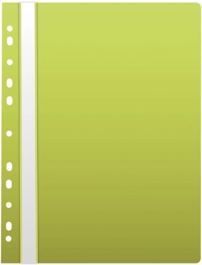 Ez a világoszöld gyorslefűző A4 egyszerű és hatékony megoldást nyújt a dokumentumok tárolásához. Az átlátszó elülső oldal 120 mikron vastag, és az átlátszatlan színes hátsó oldal 180 mikron vastagsága nemcsak védelmet, hanem könnyű eligazodást is biztosít a tartalomban.