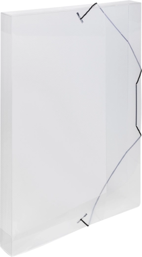 Praktikus irattartó doboz A4-es formátumú dokumentumokhoz rögzítő gumival és ellenálló polipropilén anyaggal.