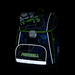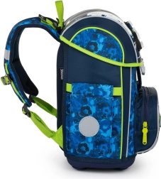 A fő rekesz minden iskolai felszerelést elnyel, és a belső merevítésnek köszönhetően megtartja a formáját. Az elülső zseb ideális uzsonnának és apróságoknak, a biztonságot növeli a fényvisszaverő elemmel ellátott fém csat és a körbefutó fényvisszaverő részletek. A merev alsó rész megóvja a tartalmat a felborulástól és a kiszóródástól, a kiegészítő akasztók pedig megkönnyítik a pántok rögzítését.