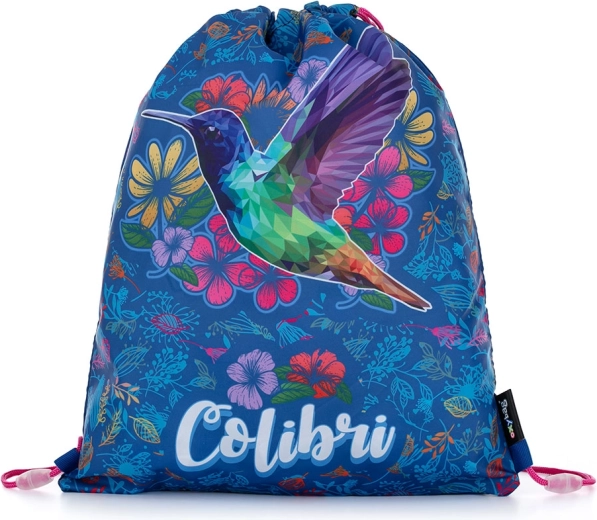 Praktikus tornazsák váltócipőnek és sportfelszerelésnek kolibri mintával. Zsinórral húzható záródással rendelkezik, háton viselhető vagy iskolatáskához rögzíthető. Tartós 100% poliészter anyaga könnyű és egyszerűen tisztítható.