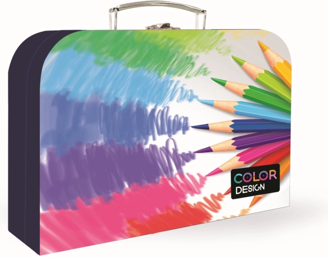 Praktikus, színes ceruzás mintájú laminált koffer iskolába és szabadidőre, ideális a rajzeszközök és füzetek számára A4-es formátumban. Az ellenálló laminált felület, a biztonságos fém zár és a masszív fém szegecsek hosszú élettartamot biztosítanak. A kompakt 340 × 230 × 100 mm méret és a kellemes 0,495 kg tömeg megkönnyíti a hordozást.