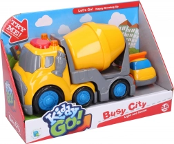 Ez a Kiddy szett élethű építkezős játékélményt nyújt. A 19,5 cm hosszú fő betonkeverő autó fény- és hangeffektekkel örvendeztet meg, melyek a fülke tetején lévő gomb megnyomásával könnyen aktiválhatók. A keverődobos pótkocsi forgatható, ami segíti a finommotorika fejlődését és ösztönzi a játékos fantáziát.
