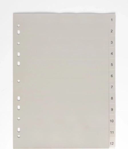 Ez az elválasztó hatékony módot kínál a dokumentumok rendszerezésére és szétválasztására irodában vagy otthon. 1–12-es indexet tartalmaz, amely lehetővé teszi a szükséges dokumentumok gyors és egyszerű megtalálását.