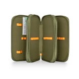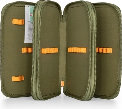 A tolltartó belsejében 40 rugalmas hurok található ceruzáknak, tollaknak, filceknek és egyéb apróságoknak. Az egyik szint átlátszó zsebbel van felszerelve, amelybe heti órarend vagy jegyzetek helyezhetők.