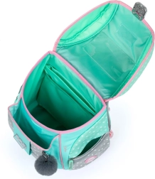 A hátizsák belső elválasztással és számos zsebbel rendelkezik az iskolai kellékek jobb rendszerezése érdekében.