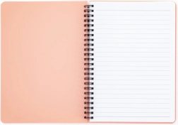 A barack színű pasztell Pastelini A5 gyűrűs jegyzetfüzet az Ön egyedi társasága. Minden füzet 60 vonalazott lapot kínál 70 g/m2 súlyban, ami elegendő helyet biztosít minden fontos gondolat rögzítésére: