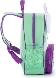 Praktikus tagolása megkönnyíti a rendszerezést: főrekesz a nagyobb holmiknak, elülső zseb az uzsonnának, valamint hálós oldalzsebek az innivalós palacknak. Az állítható pántok és a puha párnázás kényelmet adnak a mindennapi viseléshez, míg a játékos nyuszis motívum ösztönzi a gyerekek fantáziáját.