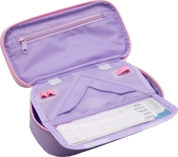 Praktikus és tágas iskolai tolltartó felső tagozatosoknak és idősebb diákoknak. Erős cipzárakkal, zárható zsebecskével, vonalzótartó rekesszel és hat hurkos fedéllel az írószerek számára. Ideális mindennek az áttekinthető tárolására, amire az iskolában szükség van.