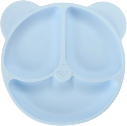 Élelmiszeripari minőségű szilikonból készült tányér több rekesszel az átlátható tálalásért, amely támogatja az önálló evést. A játékos maci forma felkelti a gyerekek érdeklődését.