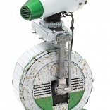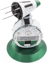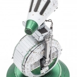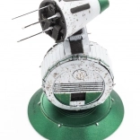 A lézergravírozással létrehozott finom vonalak és struktúrák mélységet és élethű megjelenést adnak a modellnek. Az összeállított droid úgy néz ki, mint egy apró filmes kellék.