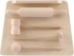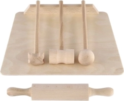 Fa gyermek konyhai készlet – vágódeszka, sodrófa és húsklopfoló 23 cm