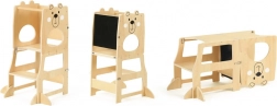 Tanuló torony Maci 3 az 1-ben többfunkciós felhasználást kínál, amely lehetővé teszi a gyerekek számára motorikus készségeik fejlesztését. Ezzel a toronnyal a gyerekek önállóságot szerezhetnek különböző tevékenységek során. Vidám dizájn és masszív szerkezet FSC® tanúsítvánnyal rendelkező fából nemcsak esztétikus vonzerőt, hanem ökológiai felelősségteljes anyagválasztást is biztosít.