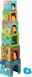 Ez a 6 kockából álló készlet lehetőséget kínál minden gyermek számára, hogy felfedezze a távolabbi vidékek egzotikus állatait. Kompakt méretüknek és kiválasztott anyaguknak köszönhetően az állatkák ideális útitársakká válnak utazásokkor és fürdéskor (vigyázat, a karton ne érintkezzen vízzel!).