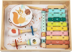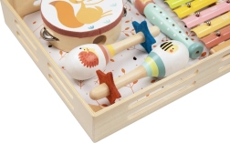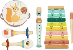 A készlet olyan hangszereket tartalmaz, mint a tamburin, maracas és xilofon, amelyek lekötik és ösztönzik a gyermekeket az önkifejezésre. Vidám erdei állatok dizájnja vonzza a gyermekek figyelmét és segít nekik jobban megérteni a zenét.
