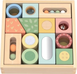 Fedezze fel ezeknek az érzékszervi kockáknak a varázsát, melyeket úgy terveztek, hogy fejlesszék a gyermeki kíváncsiságot és képzelőerőt. Minden kocka kiváló minőségű FSC4 tanúsítvánnyal rendelkező fából készült, biztosítva a termék környezettudatosságát. Az anyagok és textúrák sokféleségének köszönhetően a gyerekek megtanulják felismerni és megkülönböztetni a környezetük különböző elemeit.