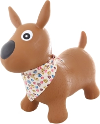 Gumiból készült ugráló kutyus kendővel, kb. 54 x 47 x 25 cm méretben. Az ülés magassága kb. 24 cm. A csomagolás mérete kb. 32,5 x 20 x 15 cm. Maximális teherbírása 50 kg. A csomag tartalmaz egy pumpát. Ajánlott életkor: 1+.