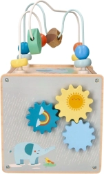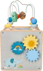 Fedezze fel a legkisebbeknek szánt szórakoztató és fejlesztő játékot: fa aktivitási kocka felső gyöngyös motorikus hurokkal, formabedobóval, fogaskerekekkel és további tevékenységekkel. Támogatja a finommotorikát, a logikus gondolkodást és a kéz–szem koordinációt. Ideális 12 hónapos kortól.