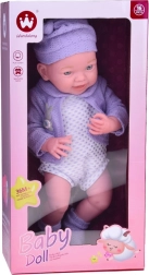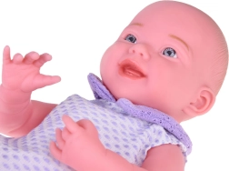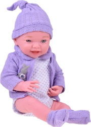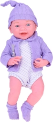 Aranyos 40 cm-es baba, amely valósághű megjelenésével és kellemes tapintásával minden gyermeket megörvendeztet. Mozgatható végtagokkal, részletgazdag arccal rendelkezik, és lila pulóverkét sapkával, bodyt és puha zoknit visel. Remek gondoskodós szerepjátékhoz, az empátia és a fantázia fejlesztéséhez.