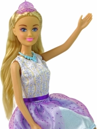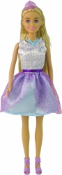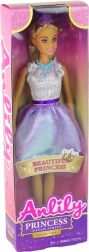 Fedezze fel az Anlily baba báját mesébe illő hercegnői stílusban. Dús, enyhén hullámos szőke haja egyenesen hívogat új frizurák készítésére. A fehér felsőrészű, lila–kék szoknyás ruhát csillogó korona, nyaklánc és magas cipellők egészítik ki – minden tökéletesen összehangolva a királyi megjelenésért.