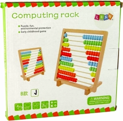 A fa iskolai abakusz ideális segédeszköz óvodásoknak és alsó tagozatos gyerekeknek. A 10 sor és összesen 100 gyöngy öt színben (piros, sárga, narancs, zöld, kék) játékos formában segít elsajátítani a matematika alapjait, fejleszti a logikus gondolkodást és a szem–kéz koordinációt.