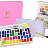 Teljes akvarellkészlet gyerekeknek és felnőtteknek 48 élénk színnel, praktikus víztartályos ecsettel, ecsetekkel és szivaccsal, két fintollal (fekete és fehér) és kifesthető képeslapokkal. Elegáns rózsaszín fém tokban, mágneses csomagolásban. Tanúsítvány: CE, szabvány: EN71, ajánlott 3 éves kortól.