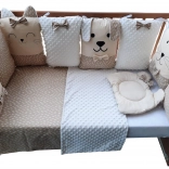 - 8 részes, 240 cm hosszú (4 rész: pamut, 4 rész: pamut + minky poliészter, töltet: poliészter)