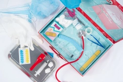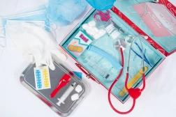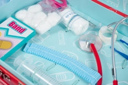 Az orvosi táska 27 darab egészségügyi felszerelést tartalmaz a valósághű szerepjátékhoz.