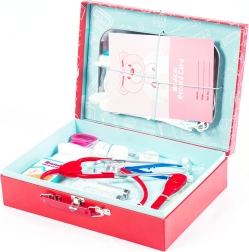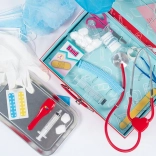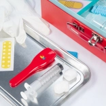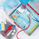 A Nagy orvosi táska gyerekeknek órákon át biztosít szórakozást és oktatást az orvosos szerepek által. A készlet széles körű eszközöket tartalmaz, mint például egy funkcionális sztetoszkóp, injekció, ragtapasz és még sok más. Ez a változatos készlet a gyerekek képzelőerejét és empátiáját hivatott fejleszteni.